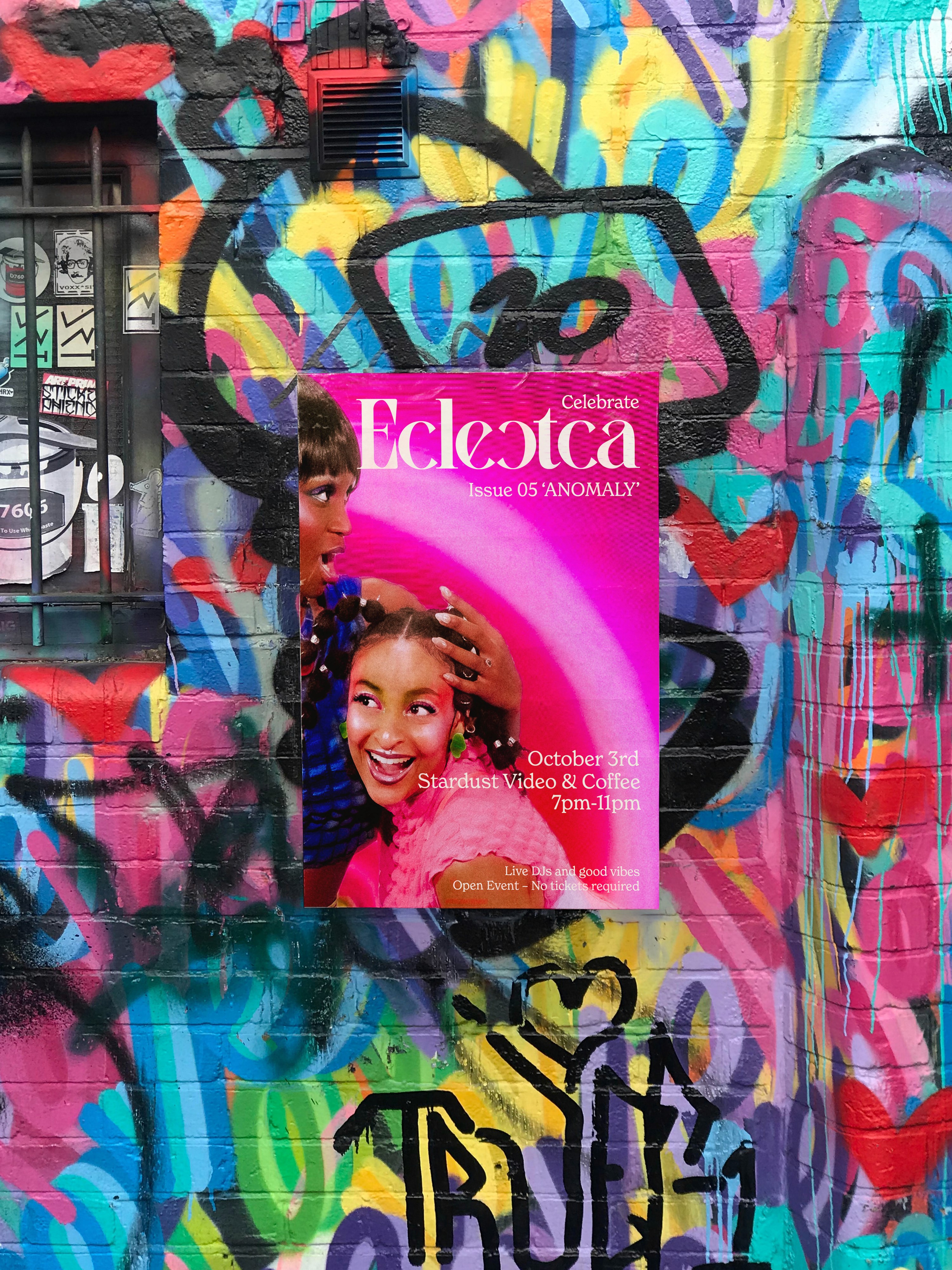 After my initial work with Eclectca, I was invited back to design additional spreads and create promotional flyers and social media content. This time, I had the opportunity to design the magazine’s cover, further shaping the visual identity of the issue.